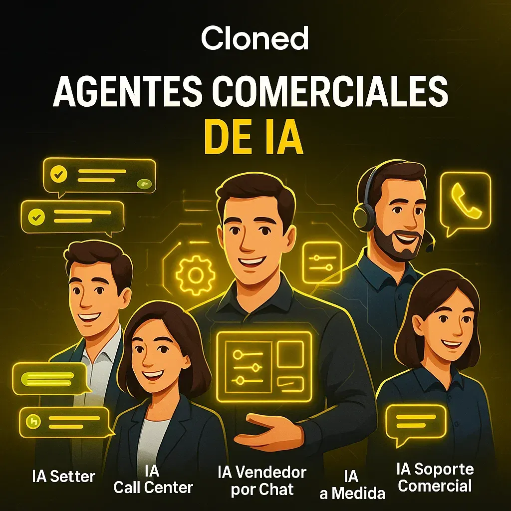 Implementamos Agentes de Inteligencia Artificial que prospectan, atienden llamadas, venden por chat y dan soporte a tus clientes, como un equipo humano… pero más rápido, más barato y siempre disponible.